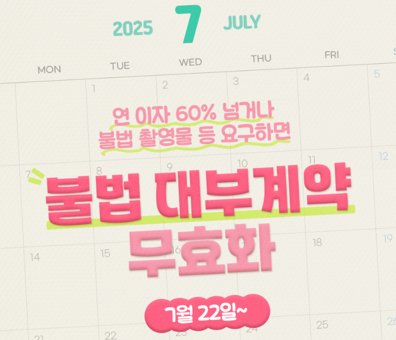 2025년 7월 22일부터 불법 대부계약에 대한 강력한 제재 조치가 시행됩니다.